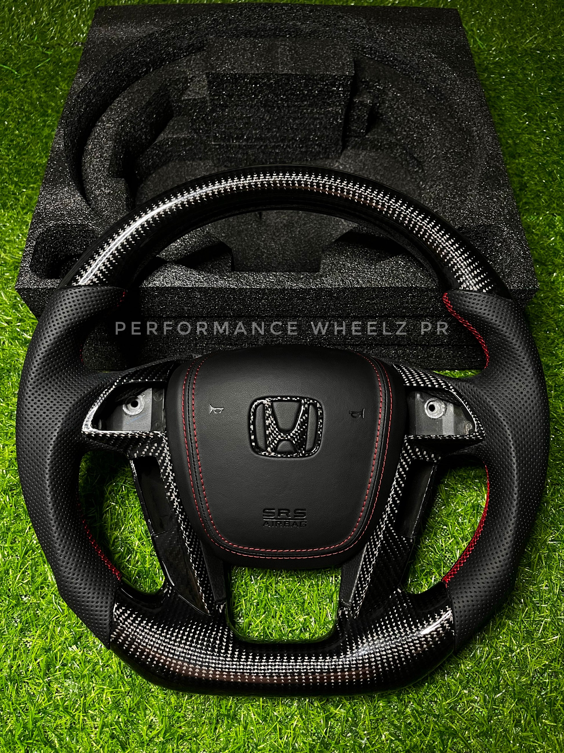 Upgrade your Honda Accord 8th gen interior with our Carbon Steering Wheelz! OEM fitment for easy installation and fully customizable for a unique look. It's crafted from Real Carbon Fiber of the highest quality, making it lightweight and incredibly strong. No core is needed, just pick your favorite design and customize it to fit your style. Create your one-of-a kind wheel with Performance Wheelz PR!