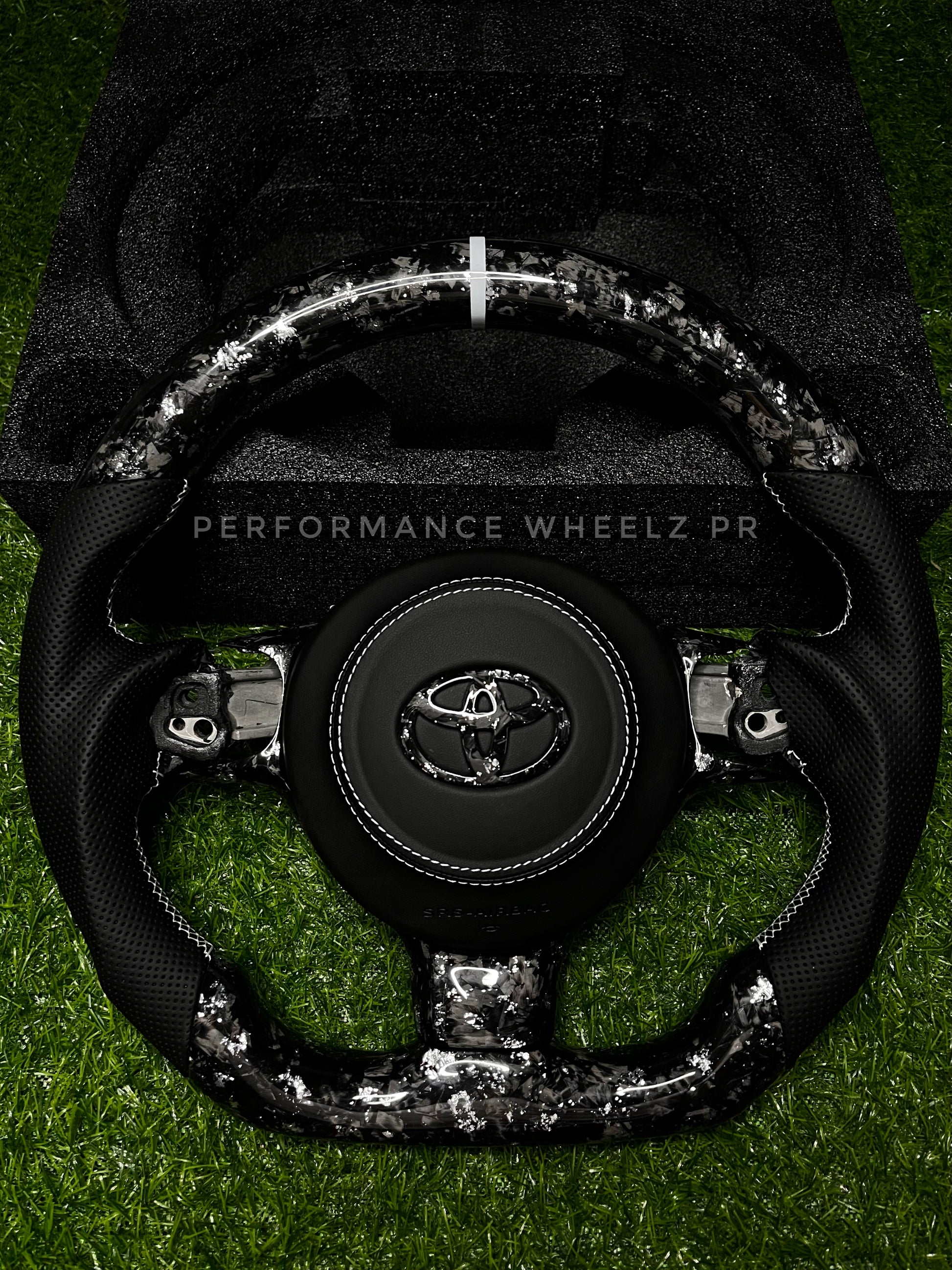 Upgrade your Toyota 86 GR interior with our Carbon Steering Wheelz! OEM fitment for easy installation and fully customizable for a unique look. It's crafted from Real Carbon Fiber of the highest quality, making it lightweight and incredibly strong. No core is needed, just pick your favorite design and customize it to fit your style. Create your one-of-a kind wheel with Performance Wheelz PR!